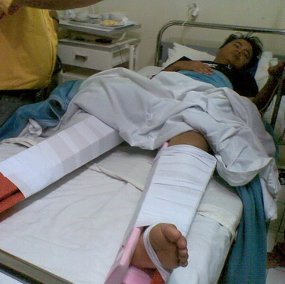Duel panas Persib Bandung kontra Persija Jakarta memakan korban. Seorang bobotoh, Muhammad Ikhsan, mengalami patah tulang kaki kanan dan kaki kirinya mengalami dislokasi atau pergeseran sendi.